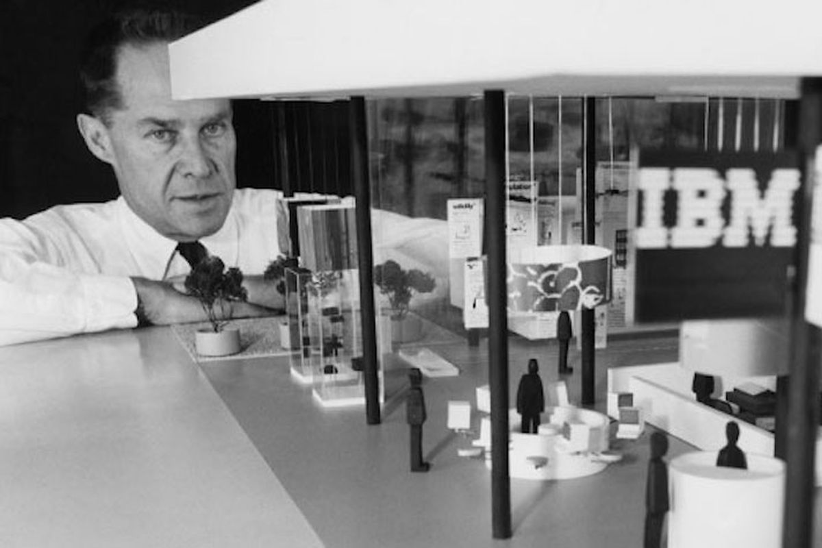 In both his architectural projects and his industrial designs, Eliot Noyes advocated simple forms and the truthful use of materials. His work is firmly grounded in the tradition of his modernist contemporaries, including Walter Gropius, Marcel Breuer and Le Corbusier. In 1932 Noyes earned his Master of Architecture degree from the Harvard Graduate School of Design, where he studied under Gropius and Breuer. He then joined their firm located in Cambridge, Massachusetts. From 1939 to 1946, with a break for service in World War II, Noyes was Director of the Department of Industrial Design at the Museum of Modern Art, New York, and in 1947 he founded his own architectural and industrial design practice, Eliot Noyes & Associates. In his designs for private houses Noyes employed open interior spaces and clear geometry, often using a free-standing fireplace to divide the living and dining “rooms.” His designs for public buildings, such as the IBM Building (1963) in Garden City, New York, are more severe but remain unpretentious. Noyes is also credited with establishing new standards of design for corporations, particularly IBM, where as Consultant Director of Design he famously designed the Selectric typewriter.