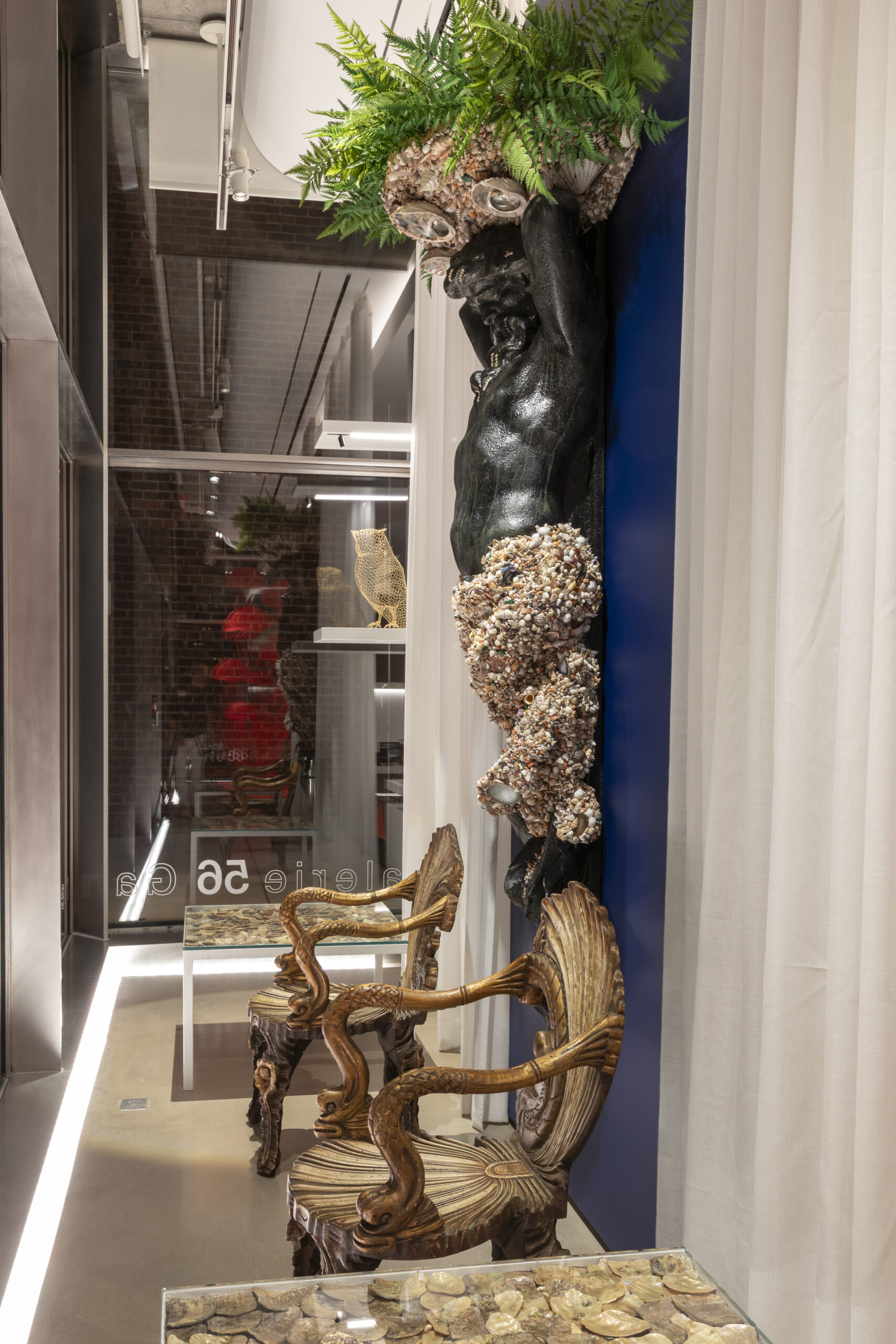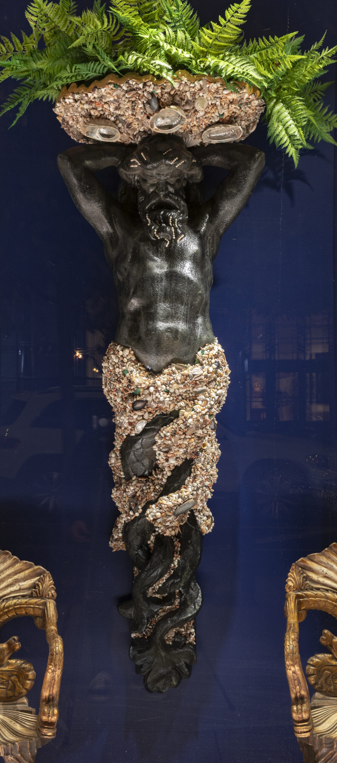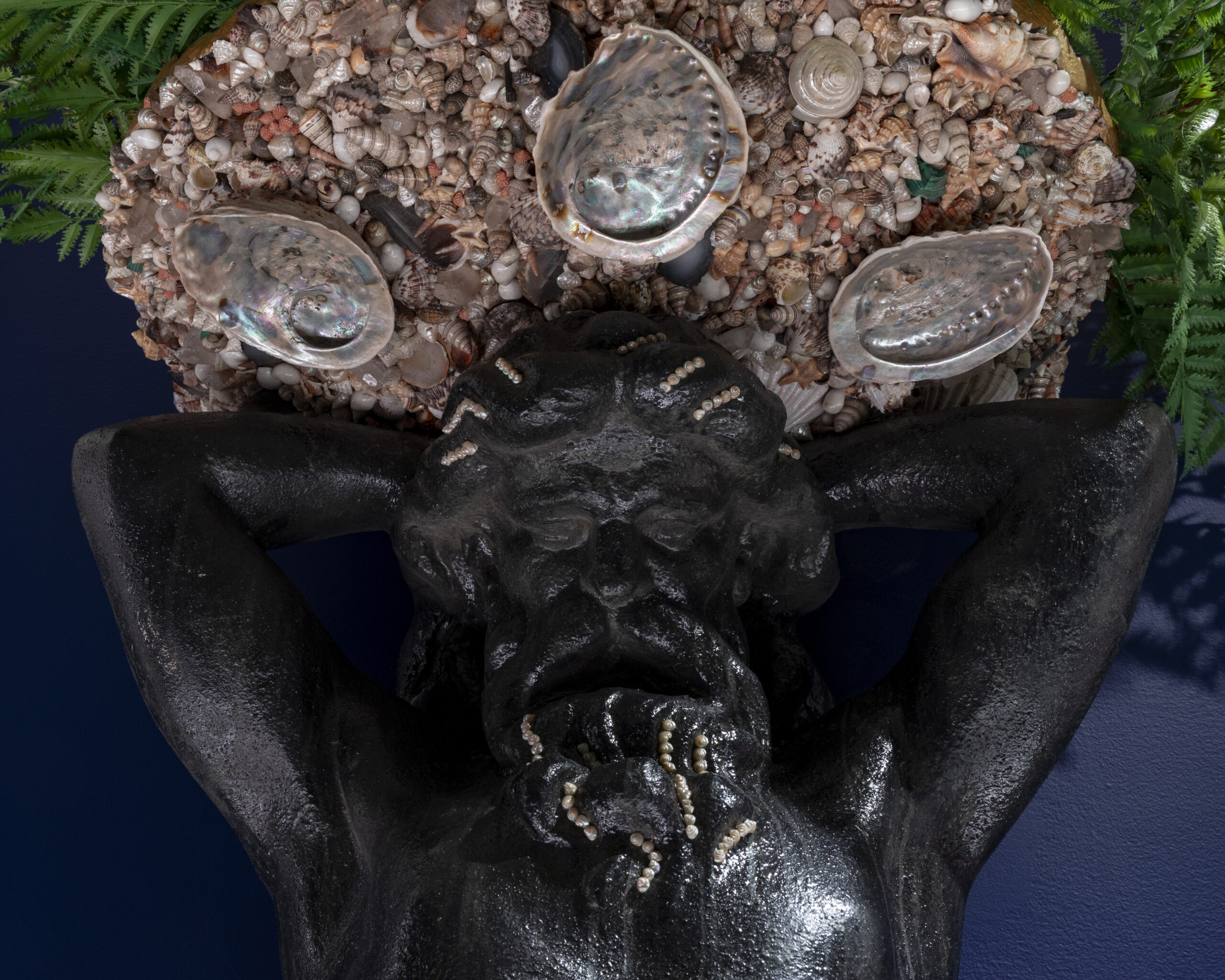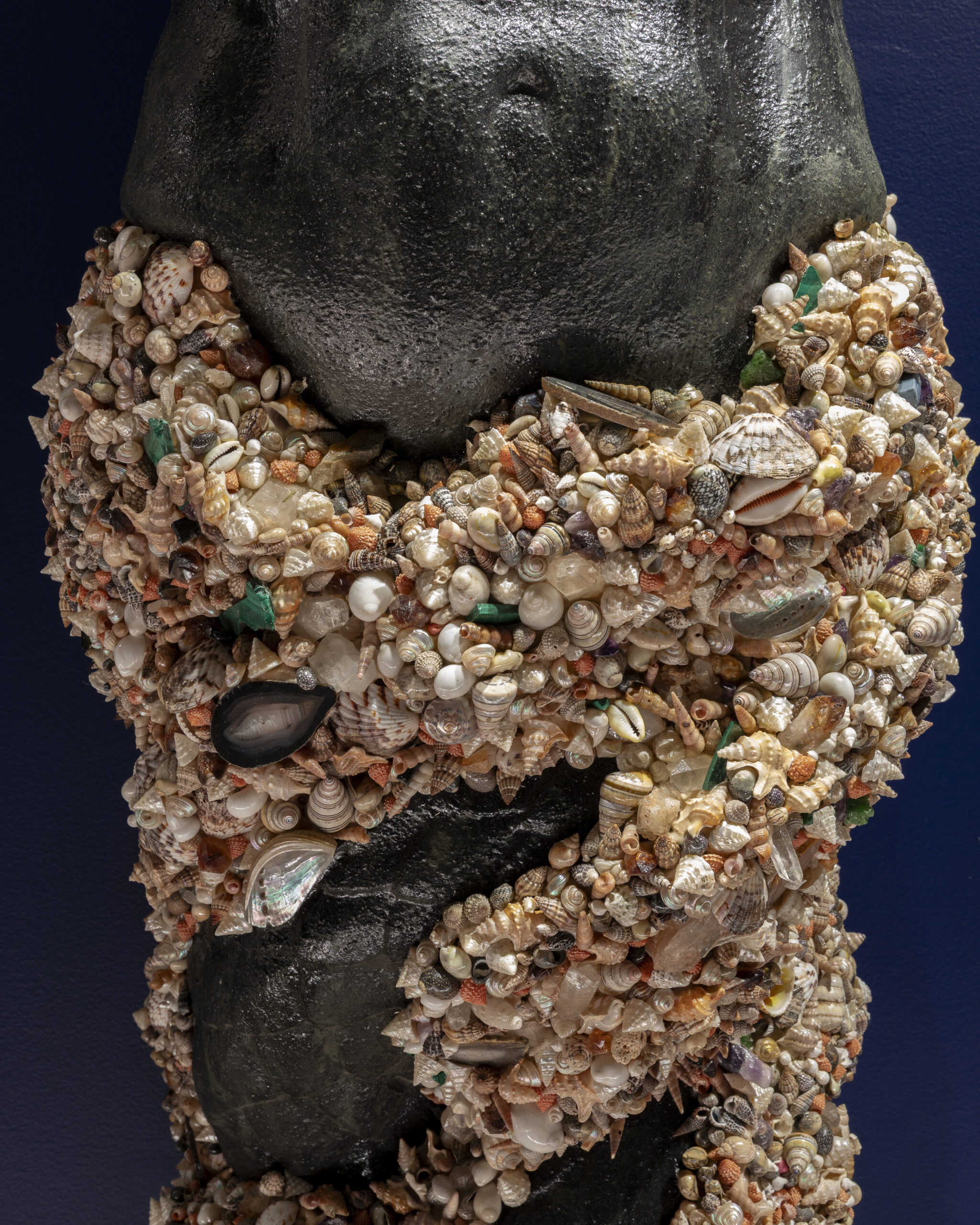 Painted resin, seashells, agate, malachite, quartz.