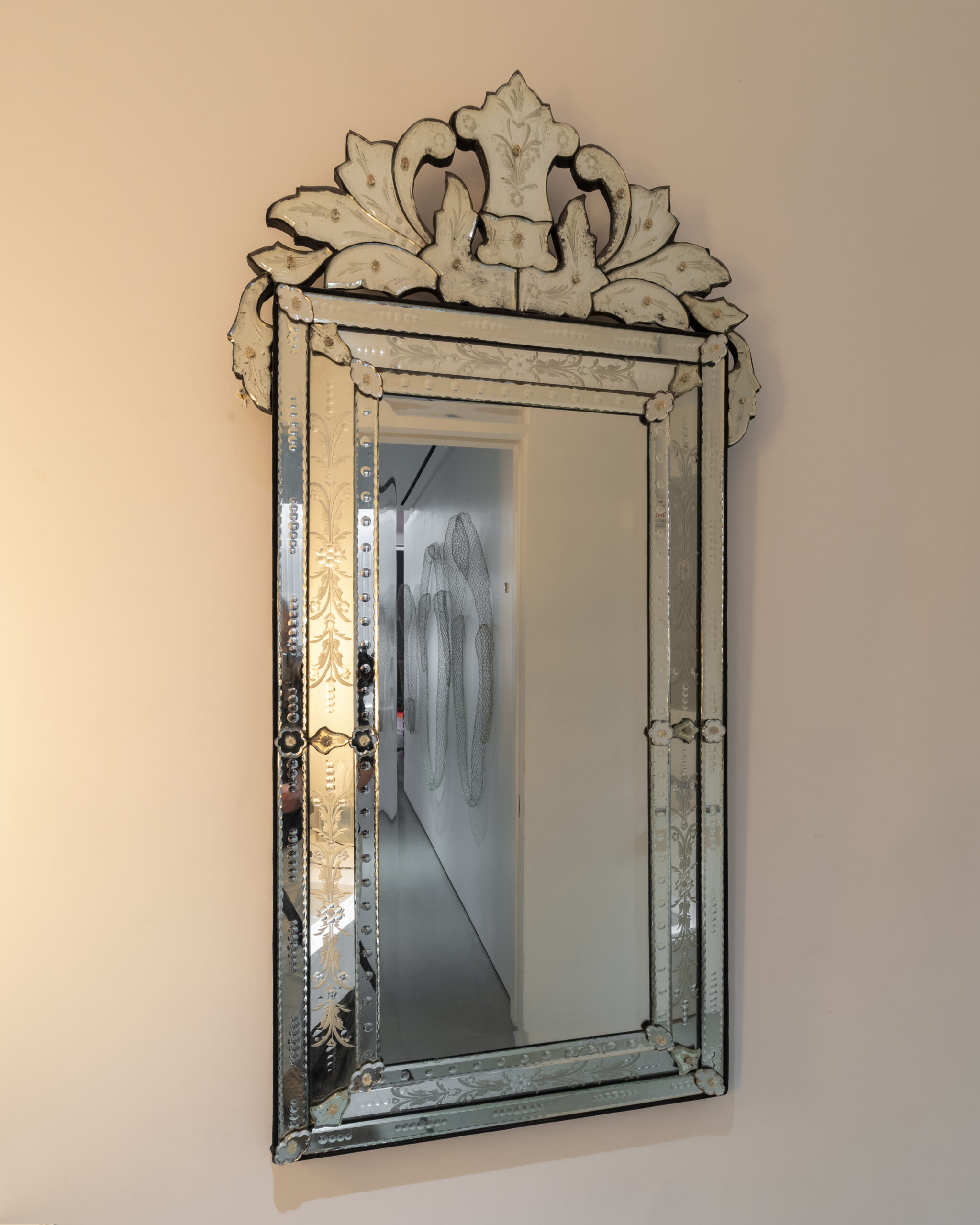 Venetian Cut Glass Mirror Italian 19th Century Etched and cut glass. 56 (H) x 28 (W) in. Copyright The Artist SAVE AS PDF PRICE ON REQUEST