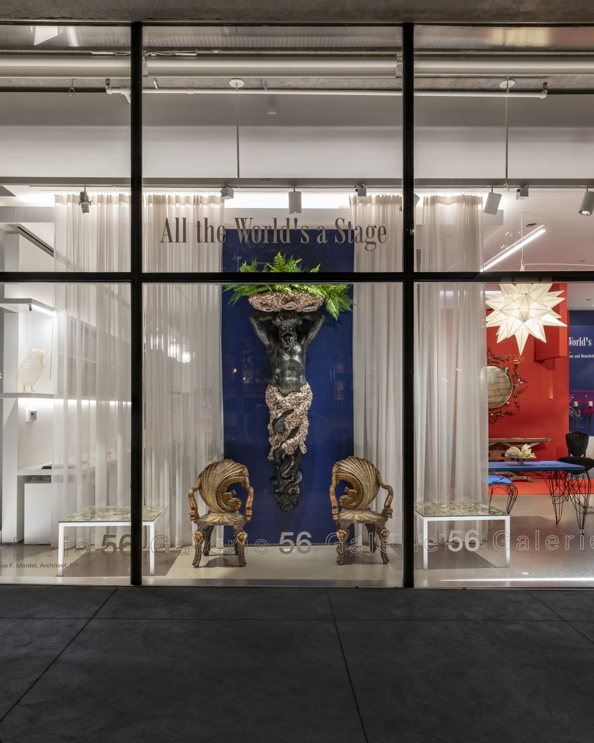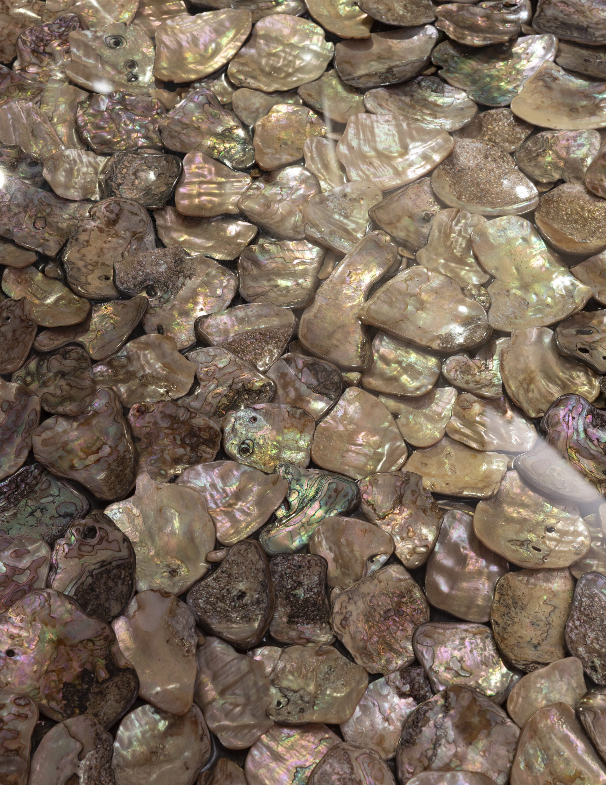 Mother-of-pearl seashells, powder-coated metal.