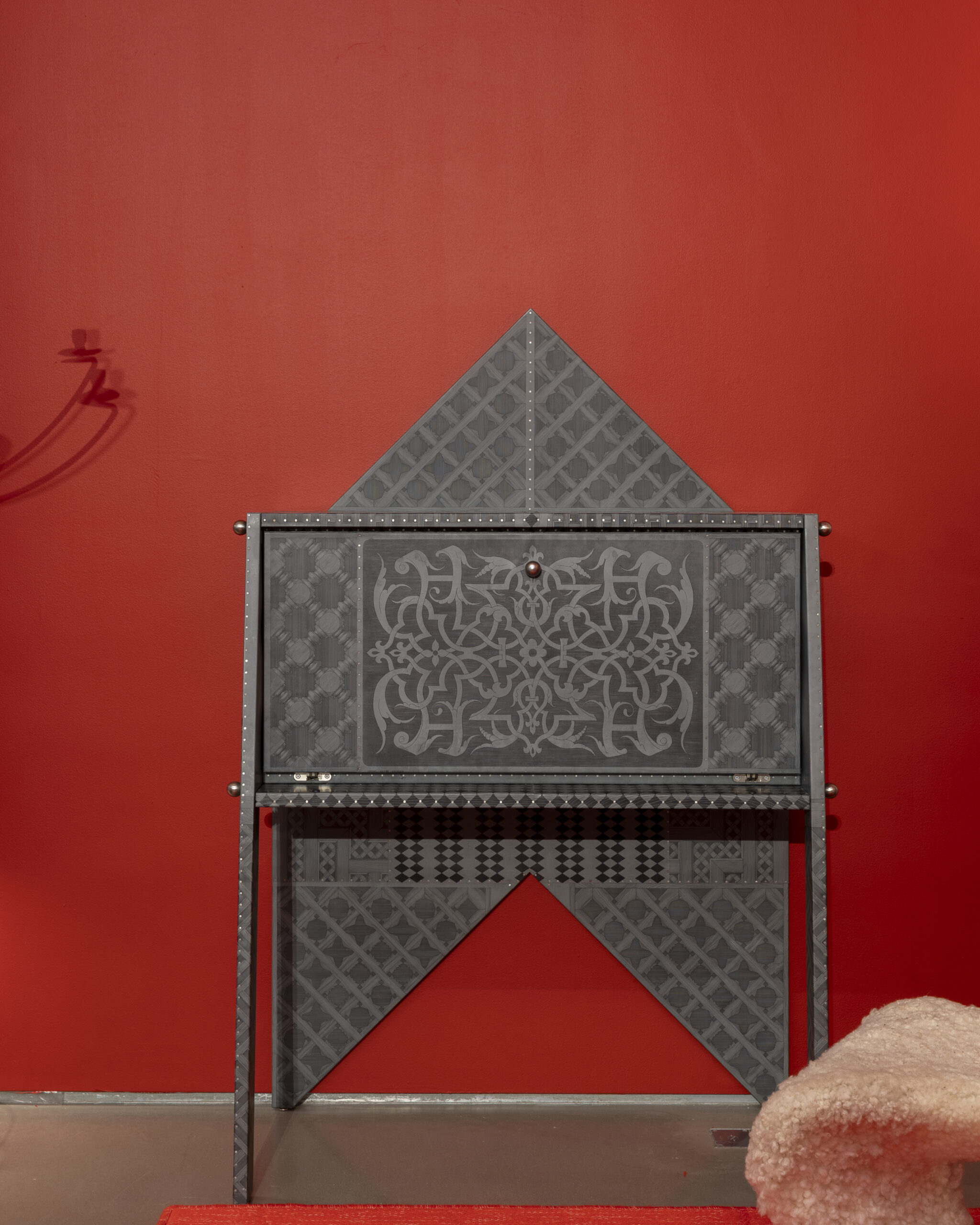 Using 1950s zinc printing plates by Piero Fornasetti, his son, Barnaba, created this desk as a gift to Liliane Fawcett, in appreciation of her long standing relationship with father and son.
